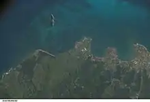 Satellite photo of the northern part of the island of São Tomé with Ilhéu das Cabras