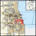The 7th congressional district of Illinois covers parts of Cook County, as of the 2023 redistricting that followed the 2020 census. All or parts of Broadview, Bellwood, Chicago, Forest Park, Hillside, Oak Park, La Grange Park, Maywood, and Westchester are included. Democrat Danny K. Davis has represented the district since January 1997. With a Cook Partisan Voting Index rating of D+36, it is the most Democratic district in Illinois.[2]