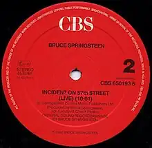 "Incident on 57th Street" is a song written by Bruce Springsteen that was first released on his 1973 album The Wild, the Innocent & the E Street Shuffle. It has been described by critics as a key development in Springsteen's songwriting career and regarded by fans as one of his greatest songs.