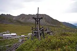 The Independence Mines, now Independence Mine State Historic Park, is the site of a former gold mining operation in the Talkeetna Mountains, across Hatcher Pass from Palmer, Alaska. The area's mining history dates to at least 1897, when active claims were reported in the vicinity of Fishook Creek. These early mining efforts were eventually joined to form the Wasilla Mining Company, which worked the mines from 1934 to 1943, and again from 1948 to 1950. The mining operation at Independence was the second-largest hard-rock gold mining operation in the state, after a larger site near Juneau. The company and the miners that preceded it built a substantial mining camp, with as many as sixteen wood-frame buildings, which were originally connected to each other by sheltered wooden "tunnels". When the company ended operations in 1950, it had expected to eventually resume operations, but never did; this resulted in a particularly well-preserved collection of mining equipment and buildings, although the weather has since taken a significant toll on the latter.[2]