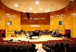 In 1968 the two sections split, and the Ion Vidu Music High School moved to the headquarters designed by the couple of architects Hans and Aurelia Fackelmann at 12 Cluj Street, where it still functions today.[1] A year later, the 340-seat Mihai Perian Concert Hall was inaugurated, considered by some specialists to be "the hall with the best acoustics in Southeastern Europe".[3] In 1977, the two schools merge again. With the Revolution of 1989, the two separated definitively, and a new section was added to the Music High School, the choreography section, named after its founder, choreographer Ștefan Gheorghe. In 2000, 50 years after the establishment of the first music school, the Ion Vidu Music High School was transformed into the Ion Vidu National College of Art, where the two existing sections, music and choreography, will function. A third section – theater – was created later by film director Diogene Bihoi.[2]