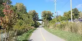 The Iron Horse Trail is a multi-use urban rail trail which connects the cities of Waterloo and Kitchener, Ontario, Canada. It runs from Erb Street West in the north near Uptown Waterloo, to Ottawa Street South in Kitchener to the south. It covers a distance of 5.5 kilometres (3.4 mi).[2] The trail was opened on 5 October 1997 on abandoned Canadian Pacific Railway right of way sections, including portions of the right-of-way of the now-defunct Grand River Railway. The two cities combined resources to purchase the property. It is a part of the Trans Canada Trail.[3][4]