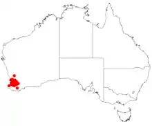This isopogon grows in forest and woodland from near Perth to near Cranbrook in the Avon Wheatbelt, Jarrah Forest and Swan Coastal Plain biogeographic regions in the south-west of Western Australia.