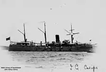 The ship was present on 20 May 1902 when the United States formally granted independence to the Republic of Cuba, following the Spanish–American War three years earlier. Calabria and the British protected cruiser HMS Psyche fired salutes to the United States armored cruiser USS Brooklyn.[5] In April 1903, Calabria joined a naval review held for the Japanese Emperor Meiji in Kobe, Japan. The foreign naval contingent included the British pre-dreadnought battleship HMS Glory and protected cruiser Blenheim, the German protected cruiser SMS Hansa, the French protected cruiser Pascal, and the Russian protected cruiser Askold.[6]