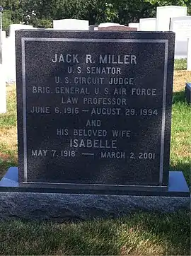 Jack Richard Miller (June 6, 1916 – August 29, 1994) was an American politician and jurist who served as a Republican United States Senator from Iowa for two terms from 1961 to 1973. He later served as a United States circuit judge of the United States Court of Appeals for the Federal Circuit.