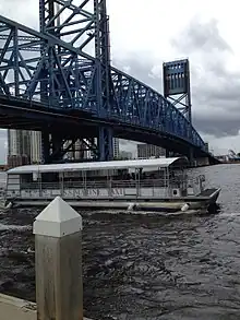 In October 2015, Lakeshore Marine operated four boats, two seating 100, one seating 60 and one seating 50.[7] The Jacksonville River Taxi currently operates on a circular route between four stops along the Jacksonville Riverwalks: boats depart the Jacksonville Landing on the Northbank for three stops on Southbank. A fifth stop at Metropolitan Park Marina is open during events in the Stadium District.[8]