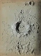 Drawing of a crater on the surface of the Moon by Nasmyth
