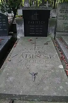 In the reconstituted sovereign Poland of the interwar period, Żabiński became an agricultural engineer with the Doctoral Degree in Zoology.[6] He was employed at the Institute of Zoology and Physiology of Animals of the Warsaw University of Life Sciences (SGGW),[4] and met Antonina Erdman, his future wife there.[6] He was the co-founder of the Warsaw Zoo, and served as its director for a decade from 1929 until the German invasion of Poland in 1939.[4] He also taught geography at the private Kreczmar Secondary (pl). In 1937 Żabiński supervised the birth of "Tuzinka", the 12th elephant ever born in captivity.[6] After the liberation of Poland in 1945, he soon resumed his position of the Warsaw Zoo director, and served there until March 1951.[6] For his Holocaust rescue, he was posthumously awarded the Commander's Cross of the Order of Polonia Restituta with the Star, by President Lech Kaczyński in 2008. His wife Antonina was also awarded the Commander's Cross.[6]