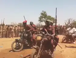 On 4 January 2020, a bus carrying mainly middle school students blew up after it ran over an explosive device between Toéni and Tougan, resulting in fourteen deaths.[97] On 20 January, jihadists attacked the villages of Nagraogo and Alamou, inside Barsalogho, Sanmatenga, and massacred 36 civilians.[98][99][100] The next day, the Parliament of Burkina Faso adopted a law permitting the recruitment of civilian militias called Koglweogo to fight the jihadists.[101][102][103] The idea was initially proposed by president Roch Marc Christian Kaboré in November 2019.[102]