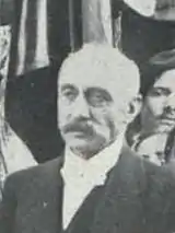 In 1901 Lloréns resumed his deputy career, this time from the stronghold Carlist Navarrese district of Estella.[54] Though his first Estellese victory was not impressive (54%), he trashed his rivals in the following campaigns of 1903–1907.[55] No-one dared to confront him in the 1910–1916[56] period and he was declared a deputy according to the famous Article 29,[57] sealing the Carlist domination of the province,[58] though he had to face competition in his last 1918 electoral campaign.[59] He is noted for successful lobbying for construction of the schools (including what is now Casa Consistorial), water pipes[60] and military barracks.[61] As a Carlist he voiced against the visit of Alfonso XIII in Estella in 1903; when it actually took place, Lloréns left the city for duration of the royal visit.[62] In 1917 he spoke in favour of the navarrese autonomy and took part in the 1918 local assembly which called for full reincorporation of the pre-1839 local Navarrese arrangements;[63] as the conflict between radical antitreintainuevistas and moderate cuarentaiunistas mounted,[64] Lloréns sided with the former.