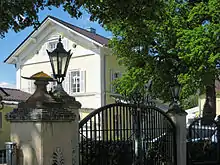 The former entrance building, which was built between 1860 and 1870, is built in the Neoclassical style and is now heritage listed.[7] It is no longer used for railway operations. It was restored in the 2000s[14] and now houses a law office as well as a psychotherapy practice.