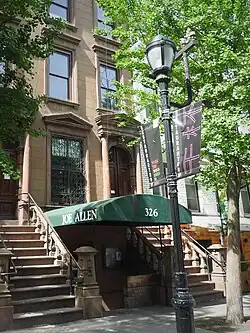 Joe Allen is an American restaurant known as a Broadway meeting place for working actors, theater staff and fans – very much an industry institution. The restaurant is located at 326 W 46th Street, New York, NY 10036, and was opened in 1965 by a restaurateur of the same name.[1][2] Joe Allen is known for having its wall lined with posters of Broadway flops such as Laughing Room Only, Moose Murders, and Dance of the Vampires.[3] The restaurant featured in scenes in the films No Way to Treat a Lady (1968) and Woody Allen's Melinda and Melinda (2004).