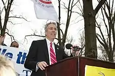 Walsh won the Republican nomination for Illinois's 9th congressional district and faced longtime Democratic liberal incumbent Sidney R. Yates, who was 87 years old, in the general election.[16] Walsh campaigned by riding his bicycle through the district. He engaged in self-admitted "outrageous" stunts during the campaign which included paying the doorman at Yates's Chicago apartment building $1,000 for being the first person to spot Yates in his district, and throwing a birthday party for Yates that included a cake decorated with 87 candles.[9][17] Walsh denied he was trying to play the "age card". Yates responded that his own age was not a factor, and that Walsh was too young and inexperienced for the job. Yates also commented that the district was too liberal for Walsh, and tried to tie Walsh to the conservative Speaker of the House, Newt Gingrich. In response, Walsh distanced himself from Gingrich and said he considered himself a "moderate Republican;"[9] he also ran as a pro-choice candidate in the liberal-leaning district, and described himself as "the most gay friendly Republican around".[18][19] Yates defeated Walsh 63–37%.[20]