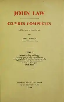 • Murphy, Antoin E. (1997). John Law: Economic Theorist and Policy-Maker. Oxford University Press. ISBN 9780198286493. The most extensive account of Law's writings. It is given credit for restoring the reputation of Law as an important economic theorist.