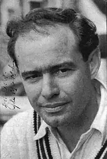 - ↑ At the time, it was believed he was 27: his birth date in Wisden Cricketers' Almanack and Playfair Cricket Annual is consistently shown as 1919 until the end of his career: e.g."Births and Deaths of Cricketers". Wisden Cricketers' Almanack (1958 ed.). Wisden. p. 932.