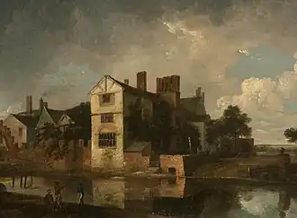 In this context, it is unsurprising that Ralston came to Manchester because his father—an engraver for calico printing—had moved the family south to Strines in Derbyshire when searching for work when Ralston was a child, rather than the city being chosen specifically as a destination for studying art.[4] At 17 he became a pupil of Joseph Parry, or "Old Parry" as he was known to his contemporaries—a Liverpool-born painter who was given the title of "The Father of Art in Manchester" after relocating to the city in 1790 and earning acclaim for his depictions of everyday urban life.[4][10][11][12] However, with his "predilection being for landscape," he was soon passed on to John Rathbone, an oils and watercolours landscape painter known in his day as "the Manchester Wilson."[13][14][15]