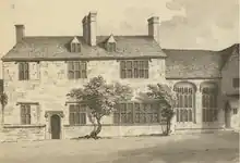 A drawing by Samuel Hieronymus Grimm shows a building described as the Old Hospital abutting on to the hall range with its two fine late medieval windows. These buildings were on the west side behind the High Street frontage of the palace. The hospital building should date from around 1500, and the lozenge-shaped terminals to the doorway and the sunken panels to the spandrels find a very close parallel with the Chancery, in Minster Yard, Lincoln.[4] This is probably the building that Edward James Willson mentions as having been demolished around 1810 and it is not shown on J. S. Padley's survey of Lincoln in 1842.[5]