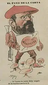 - ↑ in 1864 in Cangas he took part in "banquete progresista", La Iberia 08.09.64, available here, and grew to local president of the Progressists, La Iberia 17.12.65, available here
