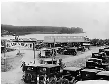 Juanita Beach Park is a 22-acre (8.9 ha) waterfront park located on the northeast shore of Lake Washington in the Juanita neighborhood, managed by the city of Kirkland, Washington in the United States. It was historically the home of several popular private beach resorts before their purchase by the public in 1956. The park straddles thoroughfare Juanita Drive and features a number of amenities, including a pier, a playground, bathhouses, and athletic facilities.[1] It is the busiest waterfront park in Kirkland's recreation system.[2]