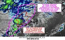 - ↑ Kummer, Frank. "Severe storm, flood watches in effect as heavy rains start to rock the region". Inquirer. Retrieved 2023-07-10.