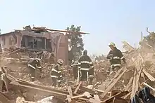 The missile strike on dormitories in Kharkiv was performed by Russian aviation with a series of missiles in the evening of 17 August and in the morning of 18 August 2022.[5] This became one of the largest attacks on Kharkiv[6] and one of the most tragic nights of the city.[7] The impact killed 25 people[1] including an 11-year old boy.[2] 44[3][8] were injured (including 3 children[4]).