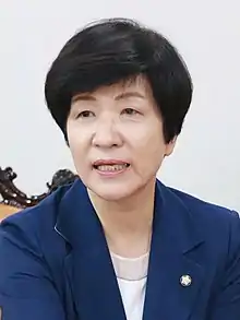 In 1999 she first entered politics when she was recruited by Kim Dae-jung.[3] She has consistently took senior roles in her party and its succeeding parties such as its secretary-general and one of elected members of its Supreme Council.[4]