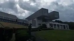 The Kitakyushu Municipal Museum of Art (北九州市立美術館, Kitakyūshū Shiritsu Bijutsukan) is located in Tobata-ku, Kitakyushu, Fukuoka Prefecture, Japan. Designed by Arata Isozaki, it sits on a hill straddling the three wards of Kokura Kita, Tobata, and Yahata Higashi. The museum houses more than 6,000 pieces of art, as well as offering various exhibitions throughout the year. The surrounding park not only offers a pleasant view over Tobata but is also a peaceful oasis with artwork in the form of sculptures scattered throughout.