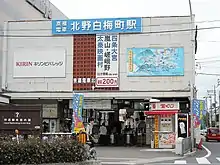Kitano-Hakubaichō Station (北野白梅町駅, Kitano-Hakubaichō-eki) is a station in Kita-ku, Kyoto, Japan, operated by Keifuku Electric Railroad. It has two bay platform tracks.[3]