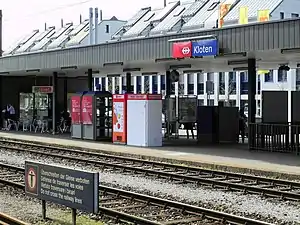 Kloten is a railway station in the Swiss canton of Zurich and municipality of Kloten. The station is located on the Zurich to Winterthur line and is an intermediate stop on Zurich S-Bahn line S7.[1][2][3]