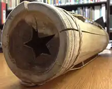 The kolitong is a bamboo polychordal tube zither from Bontok, Kalinga, Philippines with six strings that run parallel to its tube body. The strings are numbered from one to six, from lowest to highest pitch. The body acts as the instrument's resonator. The body may be a whole tube or a half tube. In both cases, the two ends of the body are closed by the bamboo nodes. To help with the resonance of the instrument, holes are made on both nodes and long cracks are made along the body parallel to the strings.