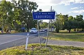 Kooringal is a suburb of Wagga Wagga, New South Wales, Australia. Kooringal is thought to mean "Side of a Hill" in the Wiradjuri aboriginal language.[2] Kooringal is located approximately 4 km from the CBD along Lake Albert Road. Kooringal is the basis for growth in the eastern section of Wagga Wagga. Kooringal High School, on Ziegler Avenue is the largest secondary school in Wagga Wagga. The Kooringal area is also home to other schools including Kooringal Public School, Sturt Public School and the Sacred Heart School. Kooringal has a large suburban shopping centre known as Kooringal Mall and it consists of a Woolworths supermarket, McDonald's, Subway, Domino's Pizza, Australia Post retail store and various specialty stores.