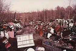 The Cuyahoga Valley National Recreation Area was created in 1974, and the National Park Service acquired the Krejci property in 1985, thinking they had an old junkyard. The Krejcis vacated the property, and the following year, a person collecting bottles on the site became ill. Park rangers would complain of headaches, rashes, and odors. The National Park Service requested a thorough analysis of the site's contents from the Environmental Protection Agency.[2] It was closed to the public in 1986 after toxic chemicals were found at 14 separate locations on 19 acres (7.7 ha) north of I-271 and 28 acres (11 ha) south.[1][2]