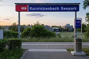 Kurzrickenbach Seepark railway station (German: Bahnhof Kurzrickenbach Seepark) is a railway station in Kreuzlingen, in the Swiss canton of Thurgau. It is an intermediate stop on the Lake line and is served as a request stop by local trains only. It is one of four stations within the municipality of Kreuzlingen.