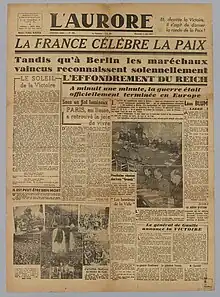 L'Aurore [lo.ʁɔʁ] was a French newspaper first sold on 11 September 1944, soon after the Liberation of Paris. Its name refers to the previous, unrelated publication, L'Aurore (1897–1914). Publication ended in 1985.