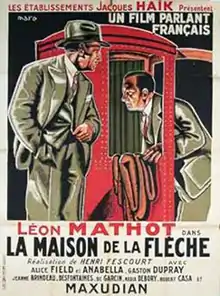 La Maison de la Fléche is a 1930 French mystery film directed by Henri Fescourt, starring Alice Field, Léon Mathot and Gaston Dupray. The film was based on the 1924 novel The House of the Arrow by A.E.W. Mason, and was made at Twickenham Studios in London as part of a co-production that saw an English-language version directed by Leslie S. Hiscott.
