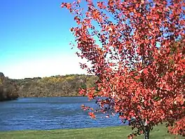 The lake formed following the damming of Smallpox Creek in 1974.[1] Smallpox Creek is one of many tributaries of the Mississippi River.