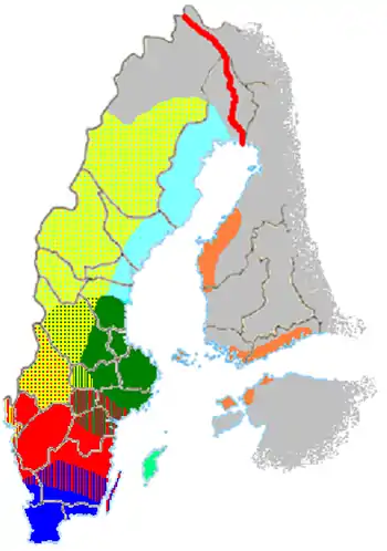 | Regional | (Unofficial languages / Dialects) South Swedish, Götamål, Svealand Swedish, Norrland, and Gutnish, among others. |