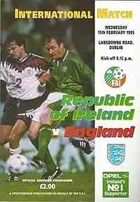 2. 1 2 Quinn, Philip (23 December 1994). "Security summit for England tie". Irish Independent. Archived from the original on 22 July 2011. Retrieved 14 May 2011.