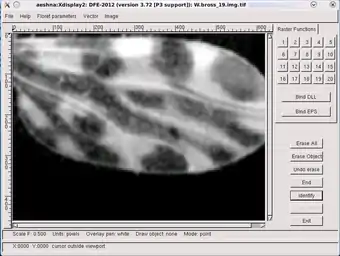 DFE - the graphical interface of the Daisy system. The image is the wing of a biting midge Culicoides sp., some species of which are vectors of Bluetongue. Others may also be vectors of Schmallenberg virus an emerging disease of livestock, especially sheep.
