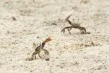 This species is the sister species of the Atlantic sand fiddler crab, L. pugilator.[2] The ranges of the two species overlap in northwestern Florida, where they are known to hybridize.[3]