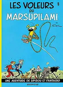 Les voleurs du Marsupilami, published in English as The Marsupilami Thieves, is the fifth album of the Spirou et Fantasio series, written and drawn by Franquin. The story is a continuation from where the previous album, Spirou et les héritiers, left off. After serial publication in Spirou magazine, the story was released as a complete hardcover album in 1954.