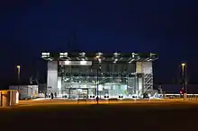 On the west side of the station is a 306-space car park for short-term parking. Adjacent to the station in the east is a six-storey parking garage with 573 spaces for vehicles, 24 for bicycles, a charging station (for electric vehicles), and public toilet facilities. It was opened in 2011 after 19 months of construction.[12] Because of the parking fees, many commuters prefer to park on the streets rather than pay to use the parking garage.[13]