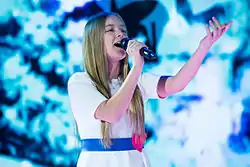 Lina Kuduzović (born 30 December 2002) is a Slovenian singer of Bosniak origin who won the first season of Slovenia's Got Talent in 2010 when she was seven years old, making her the youngest winner of any Got Talent show to that time.[1] In 2015 Kuduzović represented Slovenia at the Junior Eurovision Song Contest, with her song "Prva ljubezen" ("First love"). She ended 3rd with 112 points.[2] In 2017 she auditioned for The Voice Kids Germany, making it to the finals. Currently, she lives in Switzerland with her family. Her first single, "Ephemeral," was released in 2018. She participated in EMA 2020 with the song, "Man Like U", where she finished second with 666 fewer votes.