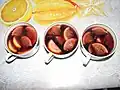 Kompott Whole or pieces of fruit in sugar syrup. Whole fruits are cooked in water with sugar and spices