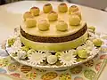Marsipankake Sponge cake filled with jam or cream, topped with marzipan