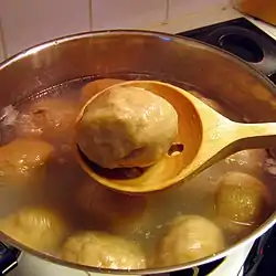 Poland | In Polish: kluski śląskie. Made of boiled and then mashed potatoes (moderately cooled, but still warm), potato flour, an egg (optional) and a dash of salt. |