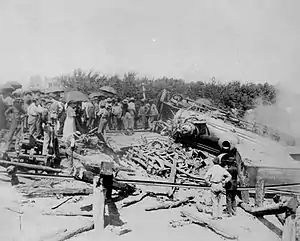 - ↑ "FIVE OF TORREY'S MEN KILLED; The Second Regiment of Rough Riders in a Railroad Wreck-17 Injured, 4 Seriously". The Sun. June 28, 1898. p. 3. Retrieved April 12, 2019 – via Newspapers.com.