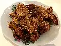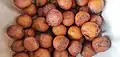 India | A dessert made with flour, soaked rice, and molten jaggery, fried with oil, and topped with sesame or poppy seeds. |