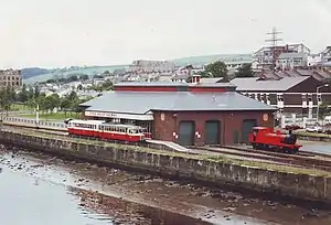 Foyle Valley Railway station (a modern building with no connection to the original) and sheds at site of the former Londonderry Foyle Road railway station