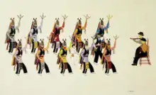 Lorencita Atencio Bird (October 22, 1918 – May 4, 1995), also called T'o Pove ("Flowering Piñon"),[2] was a Pueblo-American painter and textile artist from the Ohkay Owingeh (San Juan) Pueblo.[3] She studied at the Santa Fe Indian School under Dorothy Dunn[4] and exhibited her artwork across the country and in Europe.[5] In particular, she is known for her embroidery designs, utilizing symbolic colors and motifs such as diamonds, butterflies, and the color gold.[5] Her artworks can be found in private collections including the Margretta S. Dietrich Collection and in museums including the Heard Museum, the Gilcrease Museum,[6] the Philbrook Museum of Art, and the Wheelwright Museum of the American Indian.[7][8][5]